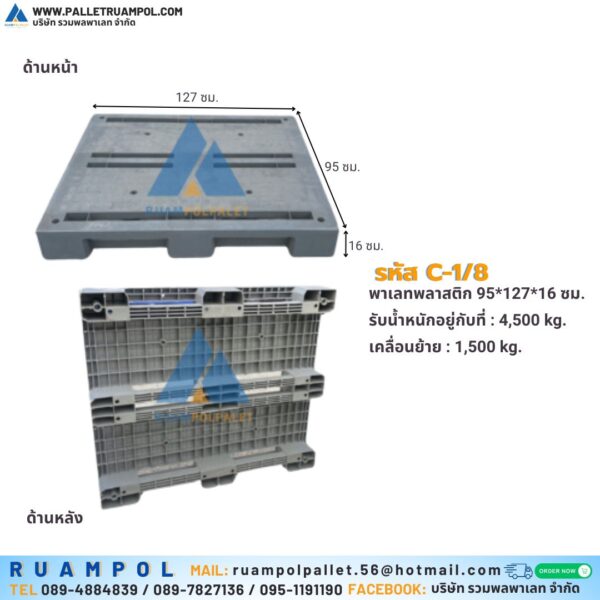 ขนาด : พาเลทพลาสติก 95*127*16cm.