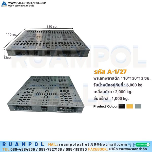 พาเลทพลาสติก 110*130*13cm. (ขากล่อง)