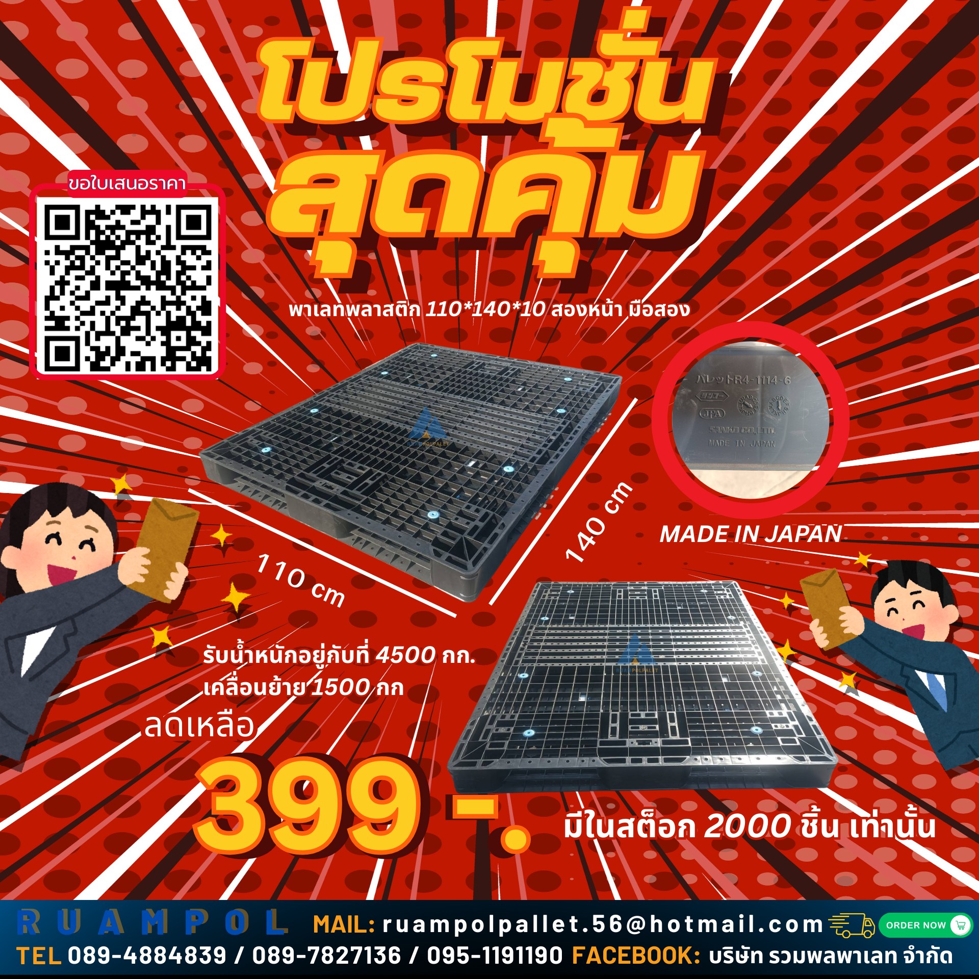 พาเลทพลาติกของบริษัท รวมพลพาเลท สินค้าราคาถูก ราคาโรงงาน ประหยัดและคุ้มค่า มีความแข็งแรง ทนทาน โครงสร้างได้รับการออกแบบอย่างพิถีพิถันและผลิตด้วยวัตถุดิบสูตรพิเศษ เพื่อให้มีขีดความสามรถในการรับน้ำหนักและทนแรงกระแทกได้ดีเยี่ยม